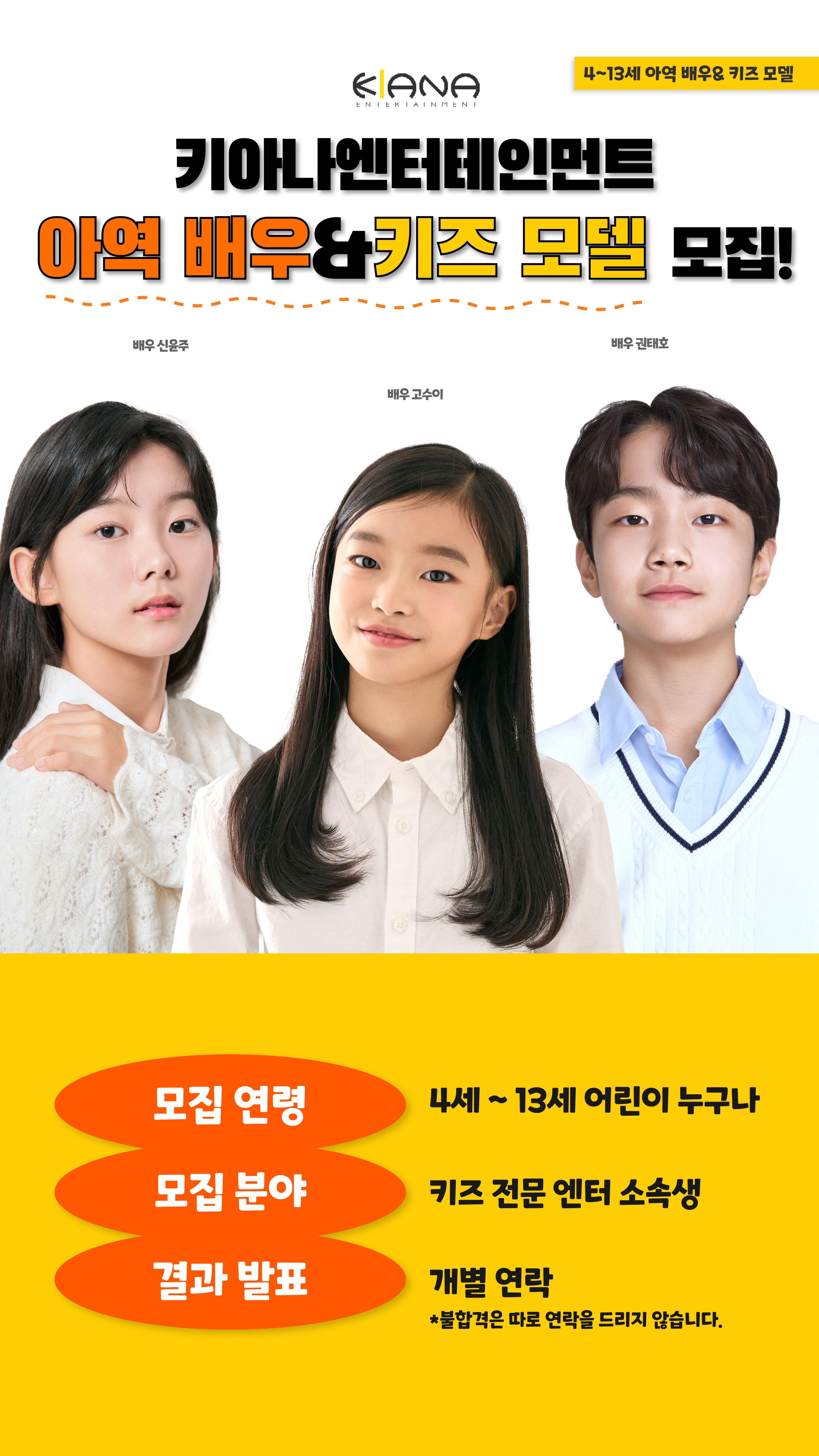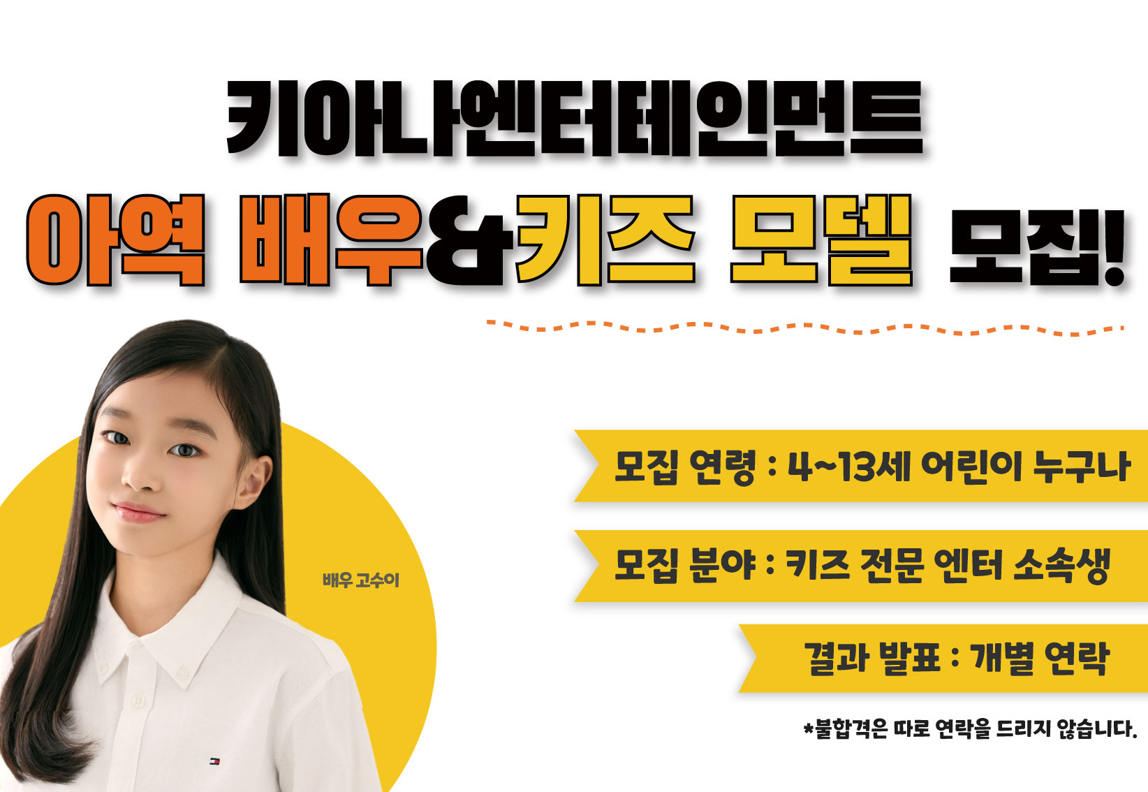 - 2025년 키아나엔터테인먼트에서 키즈 모델과 배우를 찾습니다.